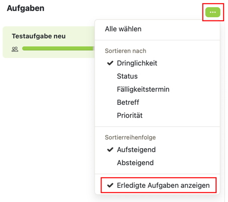 Kann ich "Erledigte Aufgaben" irgendwo noch sehen?